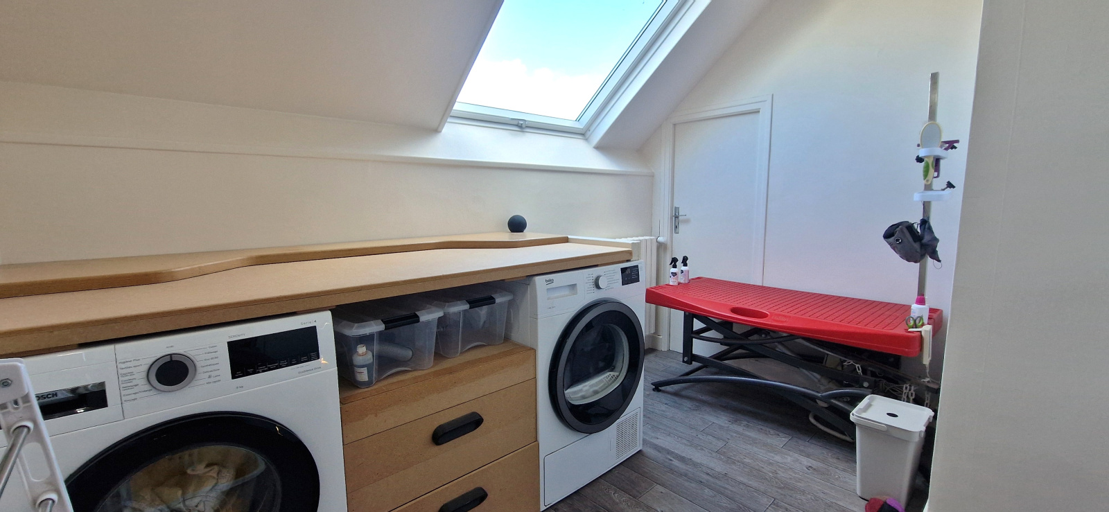 Le rez-de-chaussée offre un garage/atelier avec local technique et espace de stockage, complétant parfaitement l’ensemble.